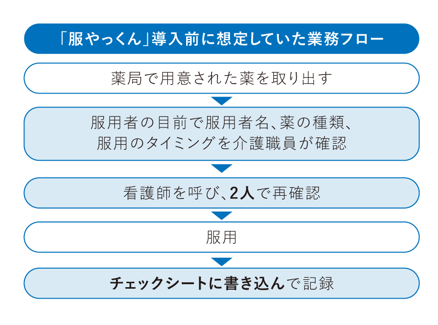 園部様:「導入前に想定していた、運営母体の病院で行っている服薬管理はチェックシートを使って人手によって行うため、100%を求めることは難しく、記録忘れなどもあって、誤薬事故が起きたときに責任の所在を明確にしにくいものでした。